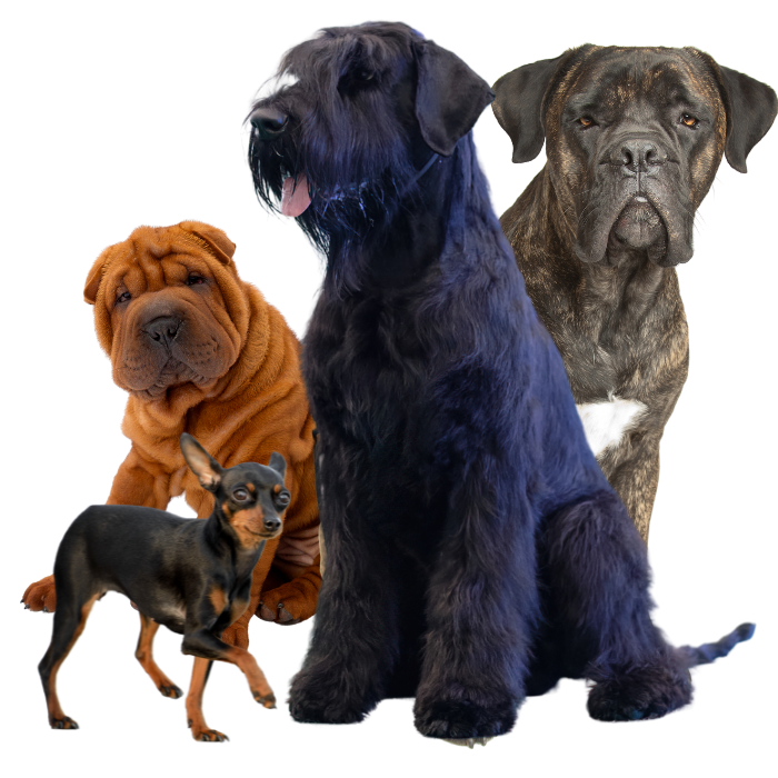 Rasele care fac parte din grupa Pinscheri, Schnauzeri, Molosoizi, Câini de munte și ciobănești elvețieni